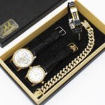 • Black Dial Men’s Watch + Black Dial Women’s Watch + Matching Bracelets + Gift Box
