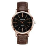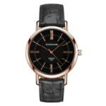 Fashion Rose Gold Roman Numeral Couple Watch – Casual Leather Strap Design