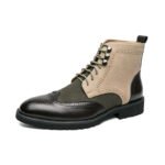 Men’s Plus Size Motorcycle Boots – Lace-Up Wedge Heel Leather Fashion