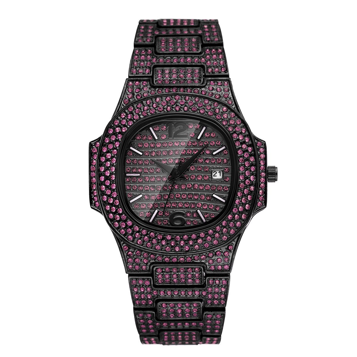 Niche Hip Hop Full Diamond Men’s Watch – Bold Colorful Luxury